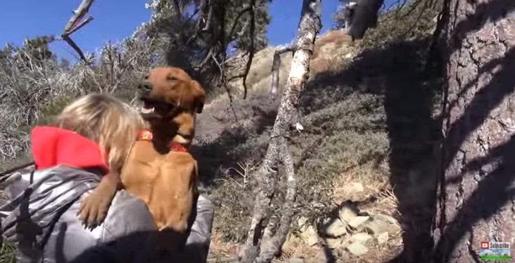 Pero Ginger se dio cuenta de que estaba recibiendo la ayuda que necesitaba, los voluntarios de Hope For Paws tuvieron que escalar la ladera de la montaña mientras Ginger subía lentamente su camino hacia arriba.