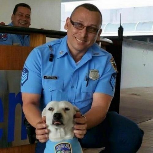 Un perro vagabundo de aspecto andrajoso buscaba refugio cuando sin saberlo ingresó al cuartel de la Comisaría de Bayamón, en Puerto Rico.