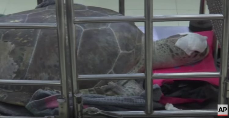 Los veterinarios de Bangkok operaron a la tortuga marina, cuya dieta imposible de digerir fue el resultado de la crueldad humana, personas buscando fortuna la hirieron gravemente.