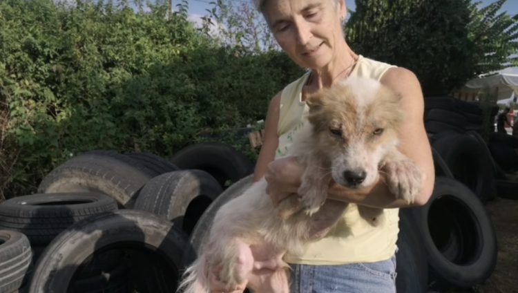 Un rescatador se acercó al cachorro. Ella le habló con calma y le dijo que lo iba a ayudar. Era obvio que el animalito había renunciado a los humanos y a sí mismo, y necesitaba a alguien en quien confiar. La mujer lo recogió y lo llevó a su vehículo.