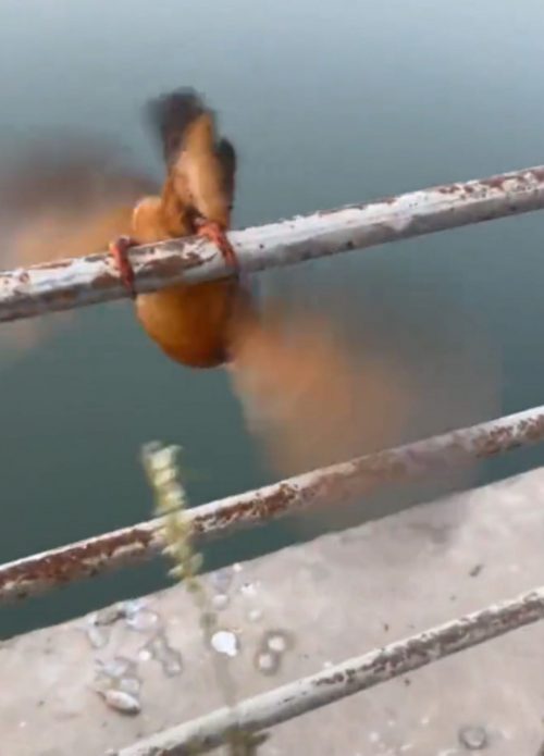 “Paseaba por el lago y encontré a este pequeño congelado y con sus patitas completamente pegadas a este barandal. Lo tomé con mis manos y comencé a darle calor para que pudiese volver a volar libre y feliz”, describe el hombre.