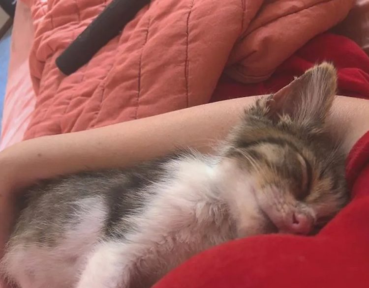 Se estimó que la gatita tenía alrededor de seis semanas. Estaba cubierta de pulgas, ácaros en el oído y tenía un caso leve de tiña. Pero, nada que con una gran dosis de amor y cuidado, no se pudiera superar.