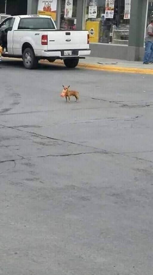 Así que, el inteligente Antonio decidió enviar a su perrita a la tienda más cercana para poder obtener sus Cheetos sin salir de casa. Fue su cariñosa perrita la encargada de cumplir con la misión.