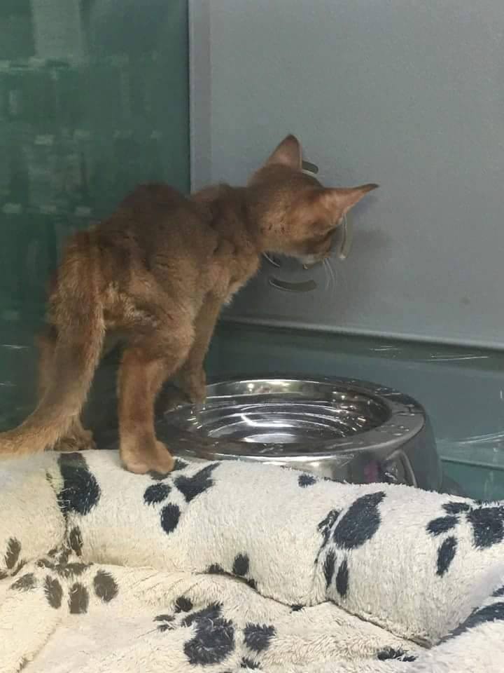 Pudo observar que Cleo presentaba signos de desnutrición, aunque es de raza Abisinio, que es de poca musculatura, estaba muy delgado, sus huesos se podían ver, su piel estaba pegada a sus huesos y dejaba en evidencia que no estaba bien.
