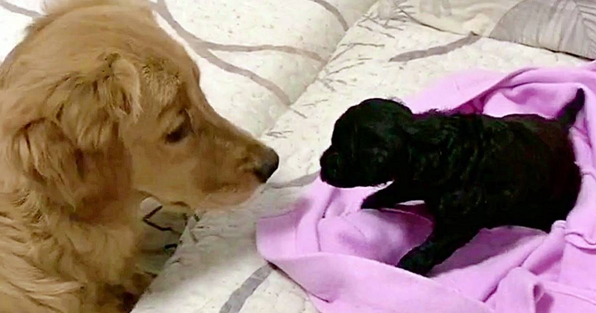 El golden retriever parece el más emocionado, finalmente, tiene su propio compañero de juego y deja claro que quiere aprovechar al máximo cada minuto junto a su pequeño hermano.