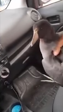 Al parecer ella es más inteligente que el hombre y le da algunos picotazos para defenderse y dejar claro que no quiere ser llevada a ningún lugar. El hombre inmediatamente comienza a gritar de manera exagerada.