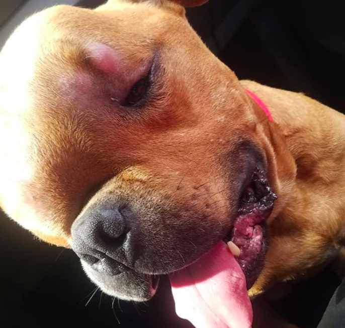 Ya que los daños de Coco se encuentran en el cerebro, parte de su cabecita está deformada y esto ha significado un problema para el perro, que no ha podido permanecer junto a una familia estable.