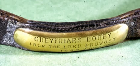 En el año 1867 las autoridades aprobaron una norma que obligaba a registrar a todos los perros de Edimburgo atendiendo al creciente número de perros vagabundos. Tenían que sacrificar a aquellos que no estuvieran registrados, así que William Chambers decidió pagar por la licencia de Bobby y le hizo un collar con una placa de bronce que decía: “Greyfriars Bobby from the Lord Provast”, actualmente está exhibida en el Museo de Escocia.