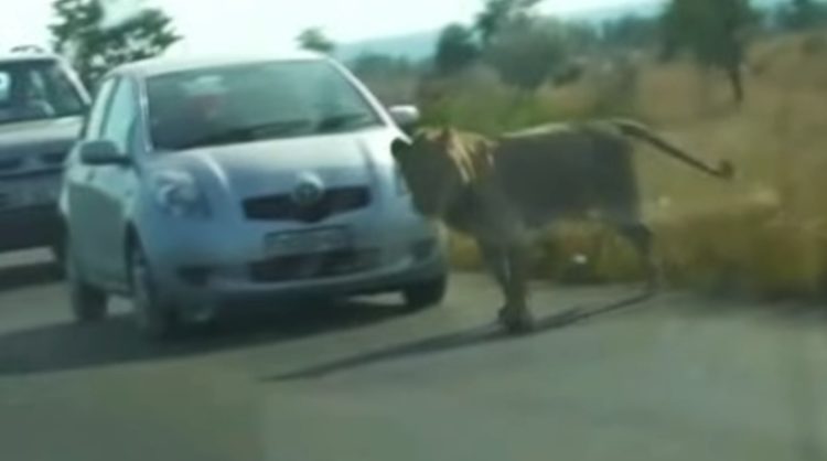 Un joven de 13 años filmó un encuentro extraño entre una leona y un auto, causando tensión, pero también risas entre las personas que vivieron la experiencia.