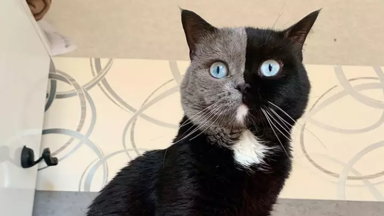 Es un animalito especial en muchos sentidos, pero lo que más llama la atención al verlo es que su carita está dividida por la mitad en dos colores visiblemente distintos.