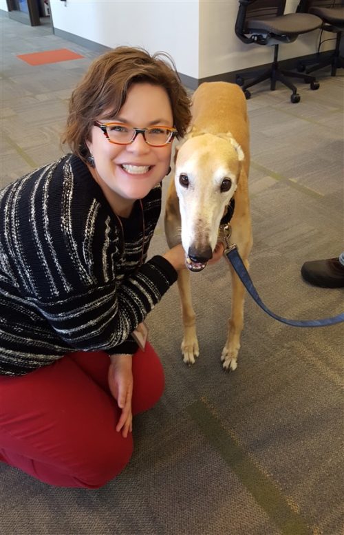 Según John, la verdad es que el chico no necesita que lo animen tanto, porque su cara siempre es así. Es su gesto característico. Este perrito de 10 años, antes era un perro de carrera que hace siete años se retiró, y ahora por fortuna vive como una mascota, certificado como perro de terapia.