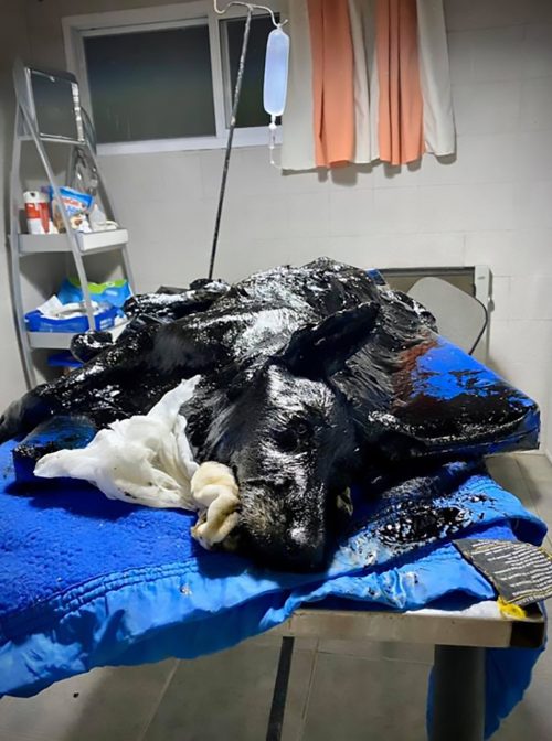 «Durante 9 horas ininterrumpidas fuimos limpiando la brea. Cada capa que lográbamos quitar nos acercaba más a descubrirla cómo realmente era y la emoción crecía”, comentó el personal de Proyecto 4 Patas.