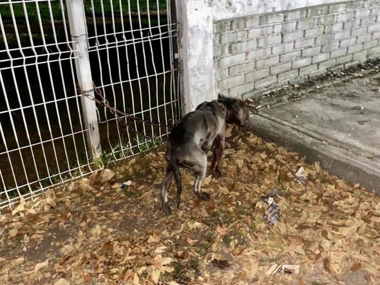 A simple vista era evidente su estado de desnutrición pero, además, el pobre estaba deshidratado por las horas que pasó amarrado e intentando desatarse de la cadena sujeta a su cuello.