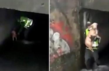 La policía cargó en brazos a este perrito que había quedado atrapado en un desagüe mientras estaba temblando de frío. El hecho sucedió en Bogotá, Colombia, donde este cachorro callejero …