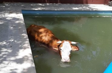 En época de calor cualquier fuente de agua es muy refrescante, algunos animales en su búsqueda acaban en lugares inusuales. Una vaca tuvo que ser rescatada de la piscina de …