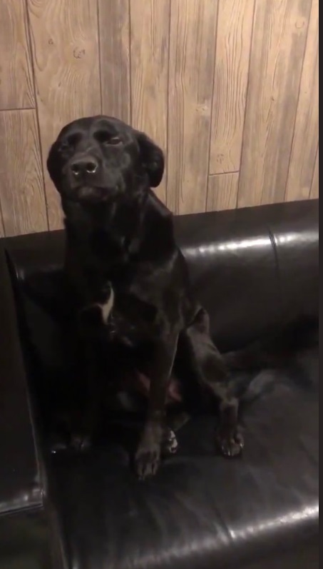 Cuando la mujer decide enfrentarla, se encuentra con la perrita subida al sofá, pero con los ojos totalmente cerrados, como si no fuera con ella la cosa.