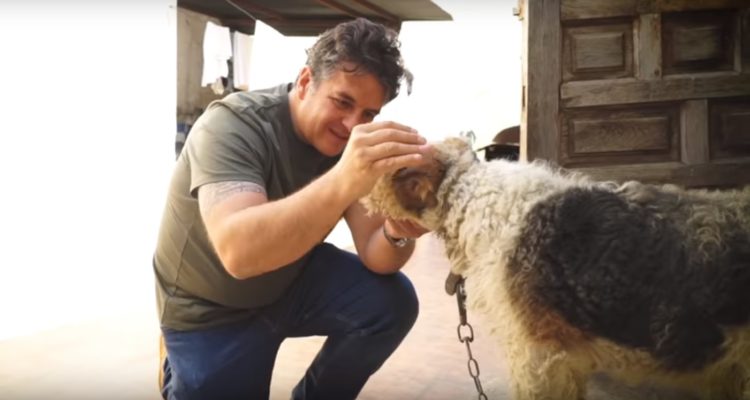 Perrita que pasó toda su vida encadenada a una pared rompe en llanto cuando alguien la libera