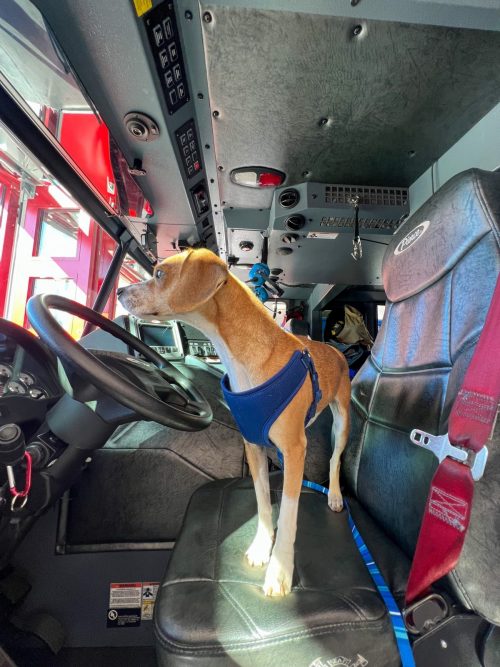 Un extrovertido perrito se presentó sin invitación a la celebración de bomberos