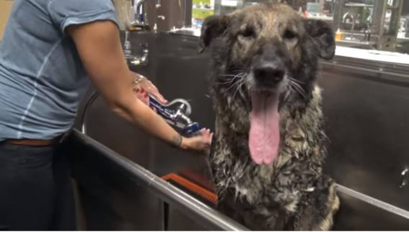 Después de tanto tiempo en la calle fue necesario un buen baño con el que lograron cambiar por completo su apariencia. Ahora el adorable peludito tiene una hermosa sonrisa cada vez que está en compañía de sus cuidadores.