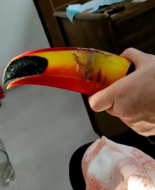 A finales del mes de septiembre, voluntarios del refugio Guardianes de Pantanal de Santa Cruz (Bolivia), rescataron al tucán que había sido agredido por una pareja por el simple hecho de haber entrado a su jardín a comer una fruta.