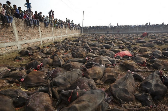 El 80% de la población del lugar y algunos de la India, viajan para presenciar el sacrificio de los animales ofrecidos a la diosa hindú de Gadhimai como ofrenda. Más de 200 hombres participan ejecutándolos.