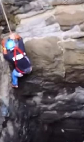 En la grabación se observa a un hombre descender hasta el interior de la cueva para sacar al peludo. Con ayuda de un arnés y unas cuerdas, logra llegar hasta el perro y atraerlo hasta él.