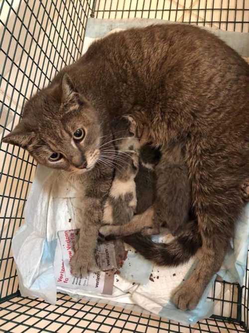 «Un hombre en el taller de mecánica que estaba familiarizado con ella, la capturó y luego entregó delicadamente cada uno de sus gatitos”.