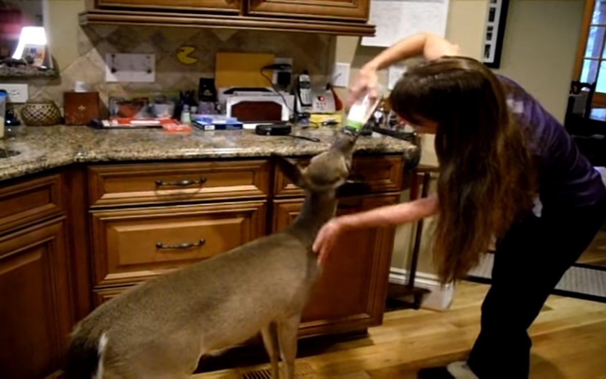 Una vez que el biberón está listo, el ciervo se lo toma en cuestión de segundos. Al respecto la mujer comenta:
