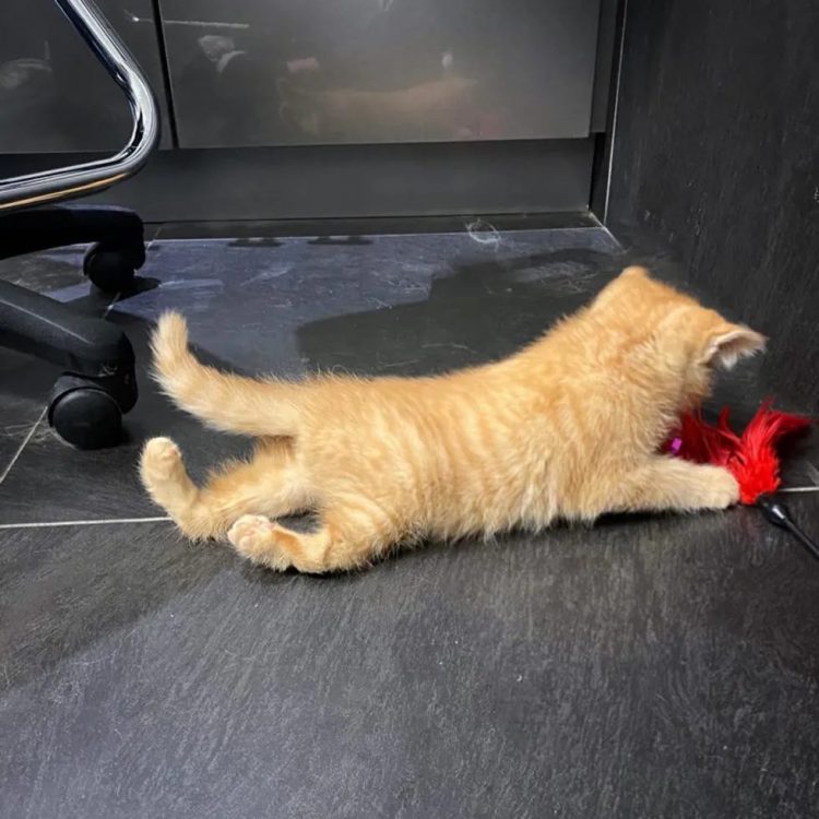 Este gatito naranja llamado Rubbix nunca había andado sobre sus cuatro patitas.