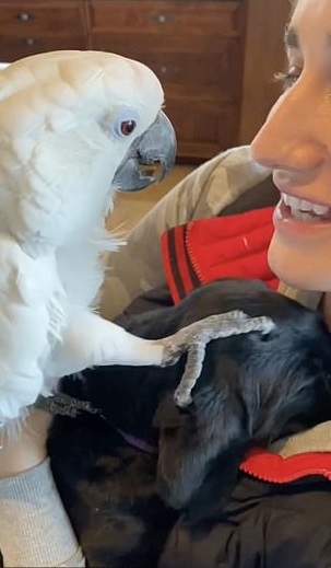 La amorosa humana había compartido en TikTok varios videos de momentos graciosos con su parlanchín loro, y el 23 de marzo le pareció una excelente idea juntar a sus dos mascotas para que todos pudieran disfrutar las ocurrencias de sus mascotas, «¡Despierta y juega conmigo!» fue el título que le colocó al clip.