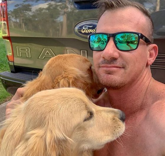 El hombre posee un taller mecánico, donde pasa largas horas tumbado en el suelo debajo de los autos que repara, pero cada vez que su hermoso e inteligente par de Golden Retrievers lo ven, no resisten las ganas de abrazarlo y se meten con él en ese pequeño espacio.