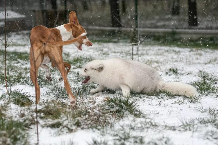 Aunque el pequeño zorrito no pudo regresar a su hábitat natural porque creció en una jaula y en contacto con humanos, ahora tiene una vida feliz y libre con grandes amigos caninos en un santuario de la asociación, con los que comparte, juega y adopta como familia.