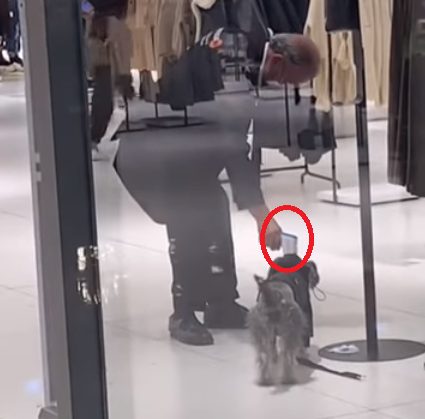 El hombre dejó amablemente que el perrito entrara a la tienda y explorara a sus anchas.