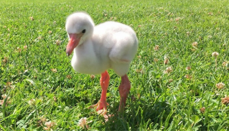 Los visitantes del aviario no pueden dejar de sentir ternura y frecuentemente se detienen a elogiarlo. Además, llama mucho la atención que este pequeñito tiene un plumaje muy esponjoso y sus patas son un poco más fuertes que un flamenco de su edad.